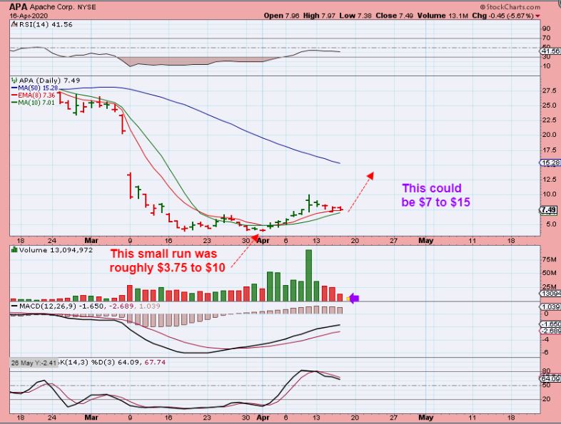 I mentioned that I re-netered a position in APA. You can see the first run was a whopping 165+%! Many of the other Stocks that I mentioned ( and briefly traded) had Big Gains too, but they are extremely volatile and hard to hold. That said, these are NOT for everyone, and they should only be SMALL POSITIONS. The list included APA, CLB, PVAC, MRO, BE, VLO, AROC, SLCA, OKE, WTI, OAS, WLL, LPI, etc.