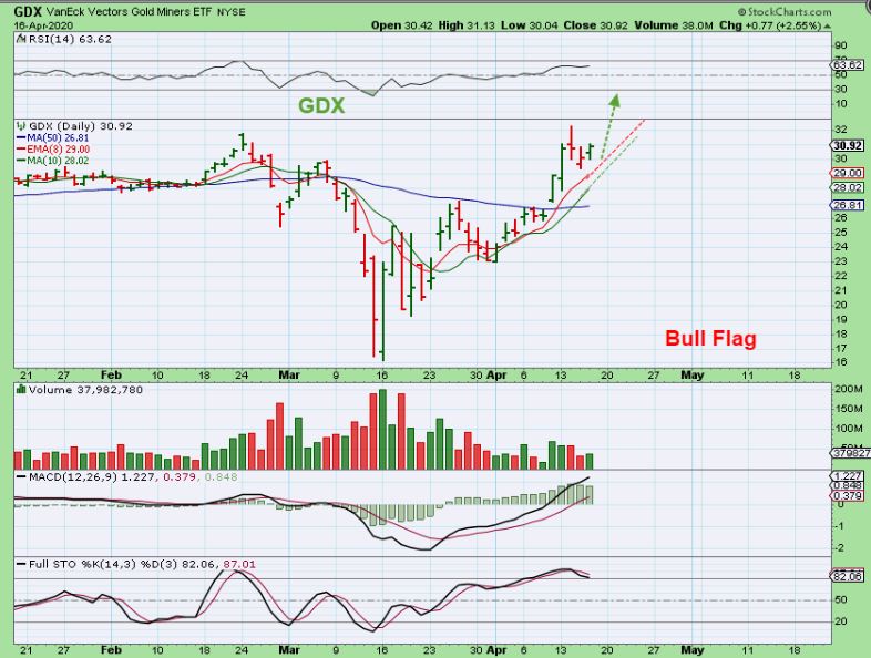 GDX seems to be leading the way higher. Today is Friday, so this could drop to the 10sma heading into the weekend & POP Monday – or – it may break out. It is a bullish set up so far as a possible bull flag.