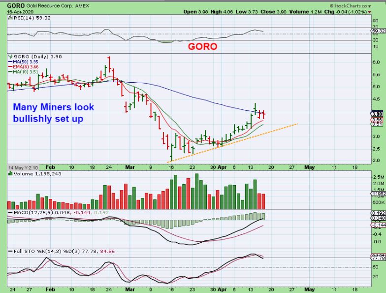 So I have pointed out many Miners like GORO, HL, AG, CDE, etc that are crawling under their 50 sma. This is usually bullish action that leads to a break out, so