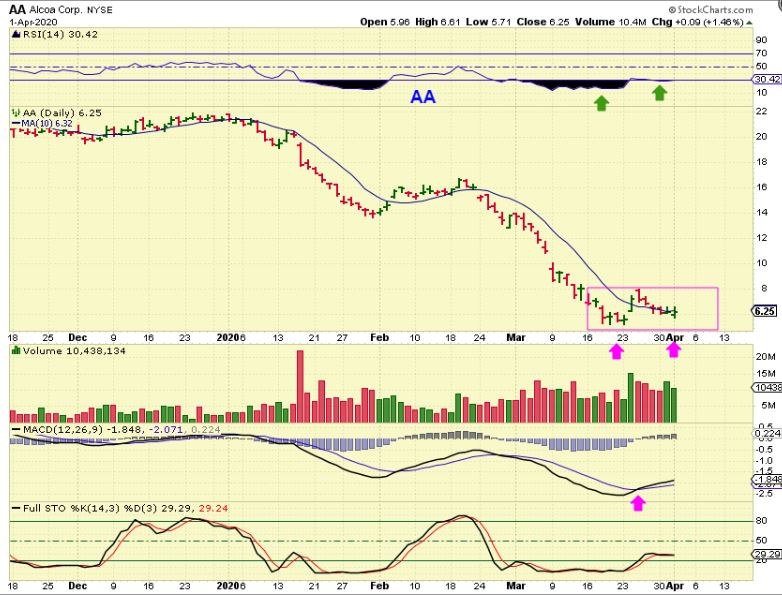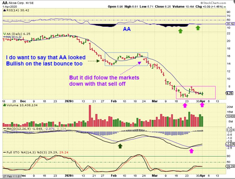 AA AS A WARNING: IF THE MARKETS DO SELL OFF, these could break down, we saw that with AA in February, but so far they are resisting the selling.