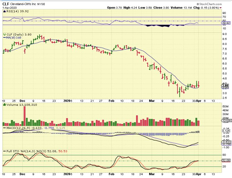 CLF remains above the 10sma.