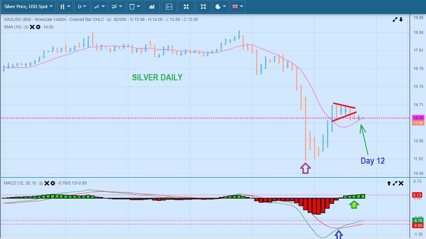 SILVER – Silver is also at the 10sma.