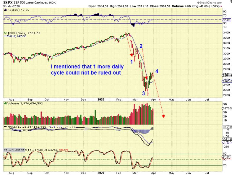 SPX – We do not have a ‘confirmed ICL’, so there is this possibility of a L.T. Final Daily Cycle. I mentioned this possibility in my weekend report, and I have repeatedly stated that smaller positions would be easier managed.
