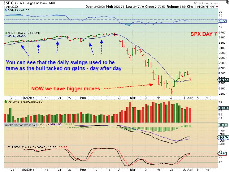 SPX – On this chart I am pointing out that Swings are bigger these days. Anyone that went in too Heavy lost 4% Wednesday , however anyone going heavy leverage lost much more. As mentioned in all of my recent reports, smaller portions are easier to ride with the current volatility. SOXL & TQQQ lost 13% & 16% yesterday alone, nd it was a Gap down, so the losses were instant.
