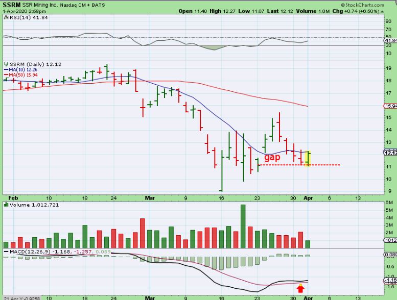 SSRM– I mentioned in that live area that I was watching for SSRM to break above that 10sma after it filled the gap. It went on to close up 8% and closed exactly at the 10sma. I didn’t buy it, but I do like it.