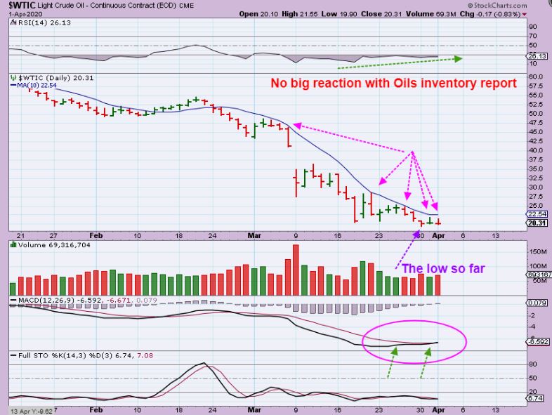 WTIC – Oil did not react to the inventory report, so it remains a choppy and unreliable set up. Oil and Oil stocks are Not a Buy without a lot of risk at this point. They can go either way.