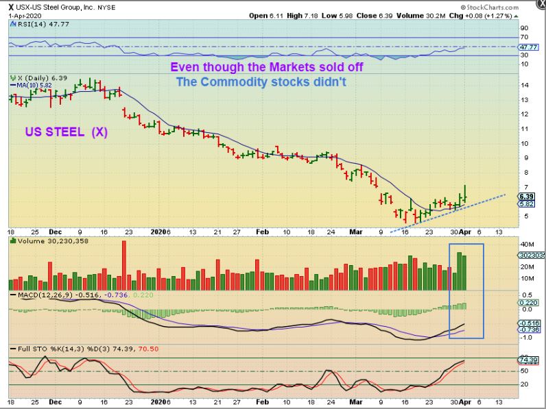 Yesterday I mentioned some commodity stocks like CLF, X, FCX, HBM that looked bullishly set up. They also did not really get sold off with the markets drop. ARE THEY INDICATING THAT THE SELL OFF IN THE GENERAL MARKETS IS NOTHING MORE THAN A DROP TO THE 10 sma? Possibly, but that VIX still looks like a warning sign for the markets. Let’s take a closer look and discuss a bit further. …