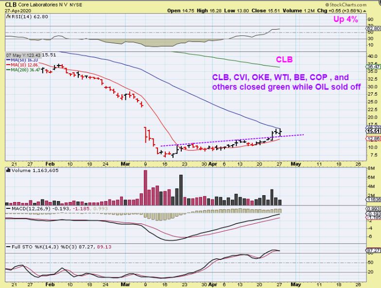 CLB is an Energy stock that I mentioned. You can see that these are ignoring OIl, this looks like it may crawl & then break above that 50sma. So far $7 to $16+ is a great trade. Many are doing this since mentioned 3 weeks ago.