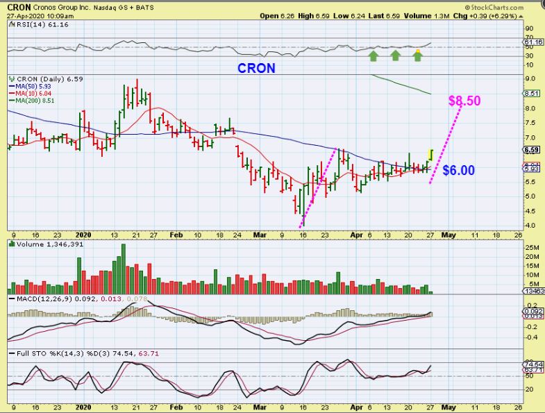 So I then noticed and bought CRON and mentioned it in the live commenting area too. These are good set ups and this may run to the 200 sma.