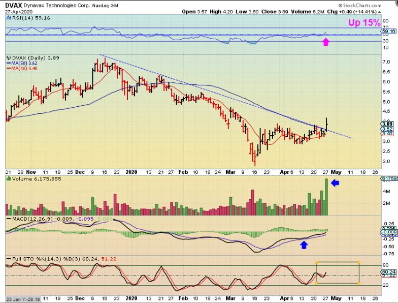 DVAX is a buy and was up over 25%, but sold down by the end of the day. This CAN still run higher and that volume makes me think that it will. A run back to $7 is almost a 100% move from current price.
