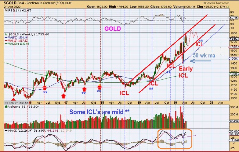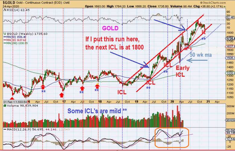 GOLD IS AT 2020 Highs. The SPX has not recovered the 2020 highs, NASDAQ is well below the 2020 highs, but Gold is at new recent highs, so I am not expecting a deep ICL drop after this run. It may look something like this.