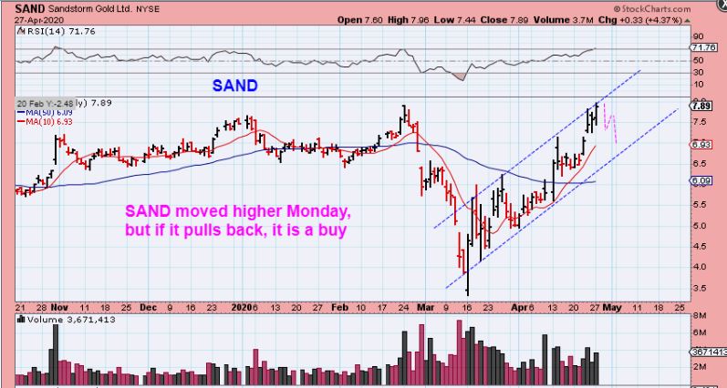 SAND broke to new highs and this could just run away, but if we get a dcl pull back in Gold and SAND or KGC or MAG, etc. briefly get caught in the selling over the next few days, any of these leaders are a buy. They can back test this area at a dcl.