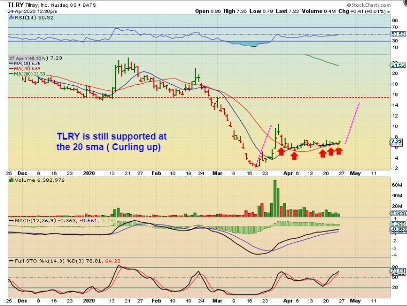 I also noticed that TLRY & CGC have finally formed what I think is a bullish set up ready to go higher. I bought it and posted this in the live area too. I got in under $7.23, this has been riding the 20sma nicely…