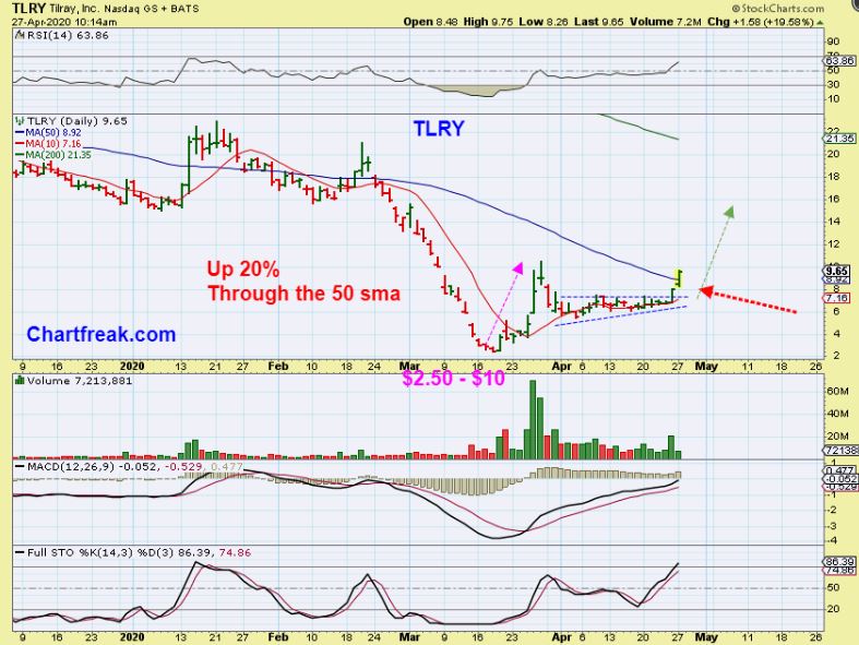 TLRY popped 20% and then sold off a bit, but I think that it is ready to continue higher.