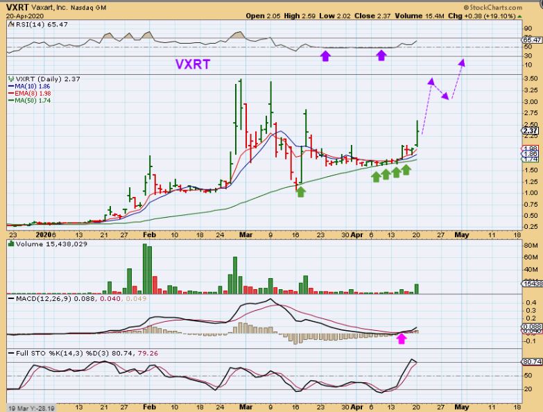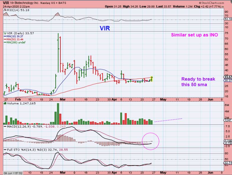 VIR was also pointed out as looking ready to go. It Popped and sold down Monday, I still think it is a buy, and I own it.