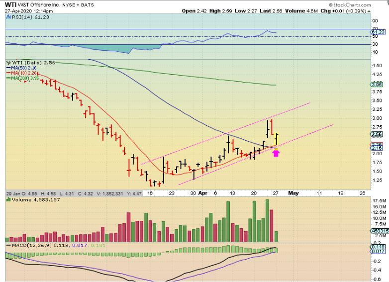 WOW! Even with OIL DOWN 25%, WTI reversed at support and even closed green! This has now traveled from under $1.25 to $3.00 with OIL Crashing down. Not an easy ride, it has been very bumpy, but these are great gains in the medium term.
