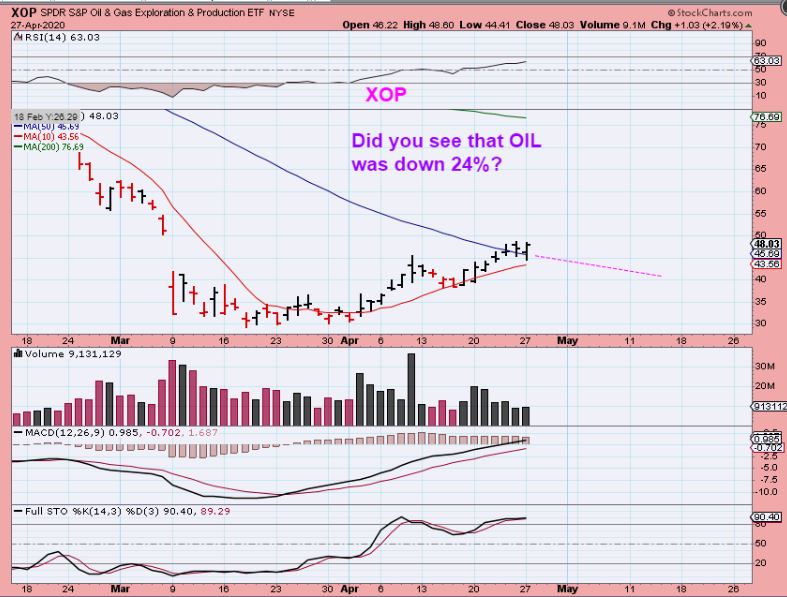 XOP -This is what I am talking about. Oil was down 25%? You wouldn’t know it if I just showed you the XOP crossing the 50sma. I have discusses a nuber of Oil stocks like MRO, APA, OAS, LPI, DNR, WTI, BE, TSUK, OKE, CVI, CLB, PVAC, etc etc . You should have a watch list if you are interested in trading this sector, but ‘warning’… it does move fast! Buy with price near support.