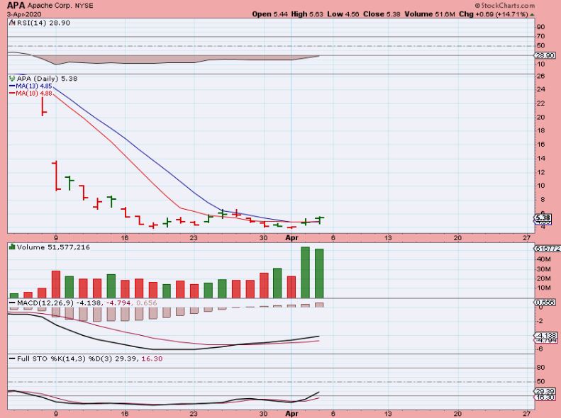 APA– I bought APACHE because the upside potential looks great and the volume is surging  ( could be short cover & buying).  I’d love to buy & hold this, but when it gets moving the swings might be a bit difficult to withstand.