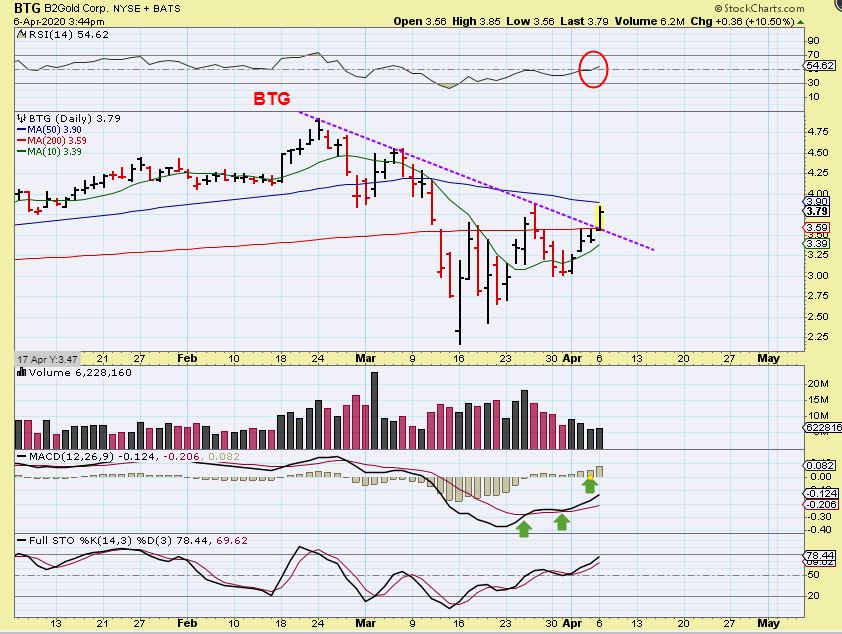 BTG- Another 10% gainer had BTG breaking above the 200sma, now it faces the 50sma. I would consider this a buy, even if it stalls for a day or 2.