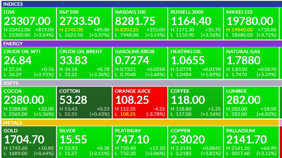 So as mentioned last week, we now have the lows in place in all sectors and the trades are ‘long‘.  As long as you didn’t chose to invest in Orange Juice, it looks like you’ll be o.k .today. Let’s make some money!   🙂