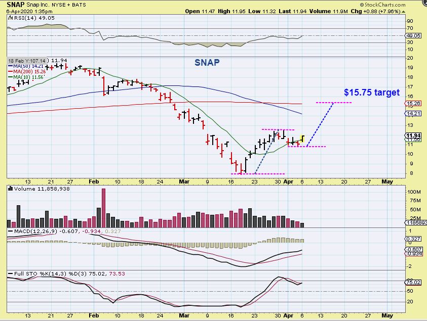 SNAP – Snap can be bought with a stop under the recent lows.