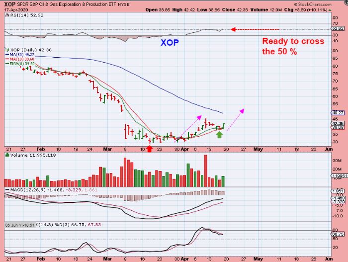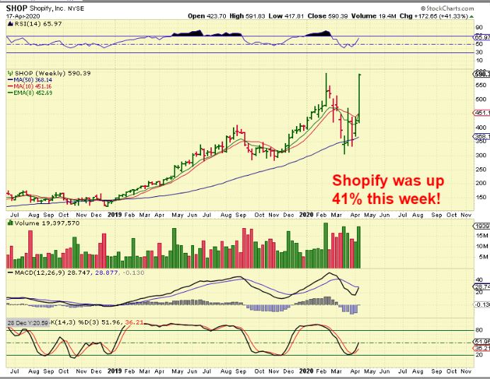 SHOP  – I pointed out SHOPIFY on April 8th as set up to try to break the downtrend. It was an inverse H&S and the business should do fine , even with COVID.  Volume was increasing.  AMZN, ZM, SHOP, ABT ( Abbott labs virus test) NVAX, CODX, etc .  etc should do fine.  I did NOT take this trade (unfortunately)…