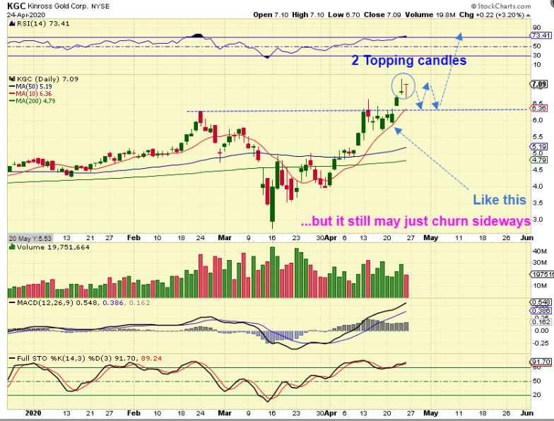 KGC – This has 2 ‘topping’ candles, but that doesn’t mean that it will break down & sell off deeply. It also may just chop along support as shown.