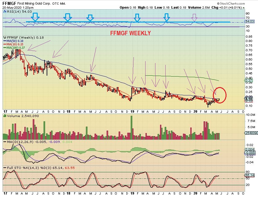 The real reason why I like FFMGF longer term ‘Buy & Hold’ is because of this long term weekly chart. The 50 week ma is 18 cents, and I noticed that this has held price down for 3 years. If this breaks out during a Bull Run…