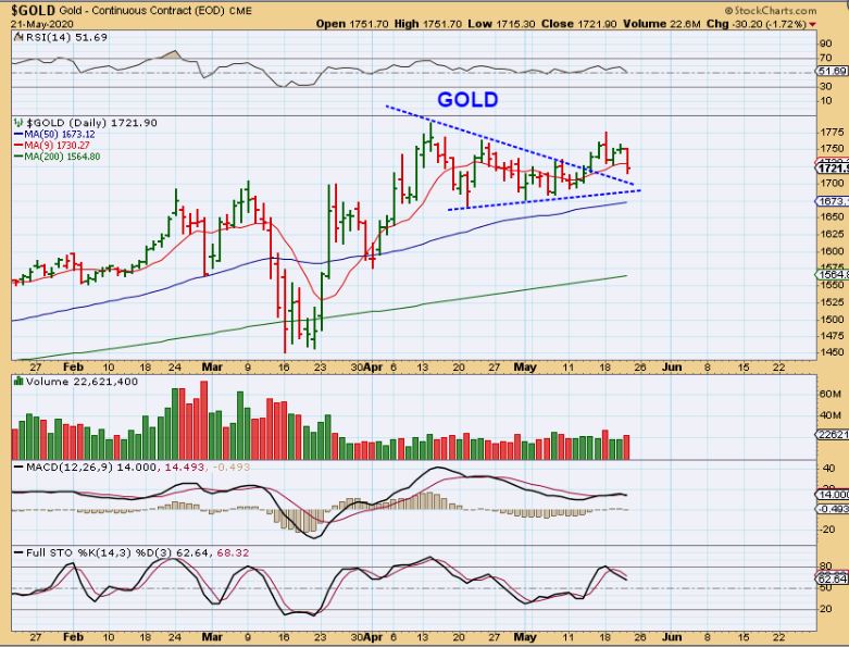 GOLD – this could happen, or Gold could just take off higher. I like to show what would be a bullish worst case scenario, so that IF this happens, people don’t panic. Selling is normal and will happen in a Bull Run.