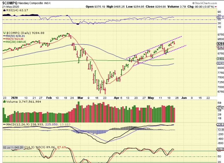 The NASDAQ is well above its 200sma and is in a rather tight up channel at this point. From the top of a channel comes a drop.