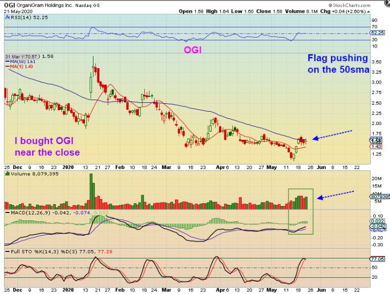 I bought OGI yesterday as a bit of a lagger that I am hoping will break out.