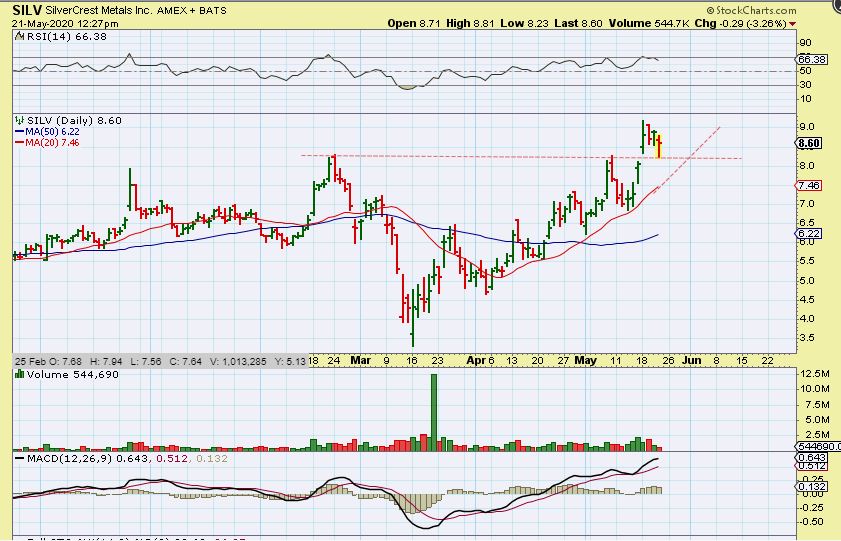 TLRY – We caught the lows on this one in March and rode a good part of that $2 to $10 move. It formed a bullish consolidation and look ready to go again.