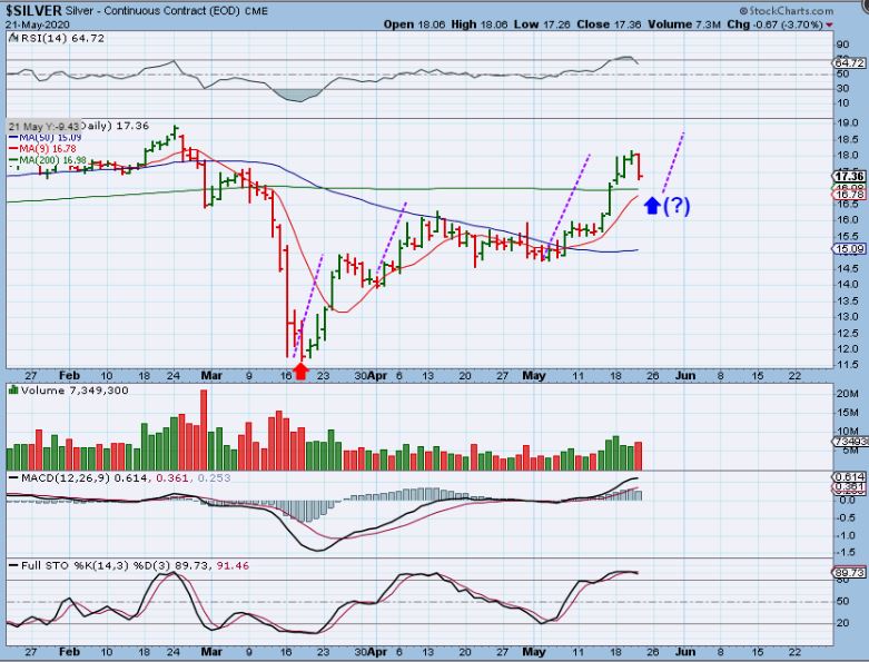 SILVER dropped 3.7%, and it can drop further too. We just had 5 nice days higher in a row, but 1 down day had some thinking that ‘something could be wrong’. As I explained in Wednesdays “Should I sell? ” report–we will have a bumpy ride, we will see down days, maybe even 3 or 4 in a row. In fact…
