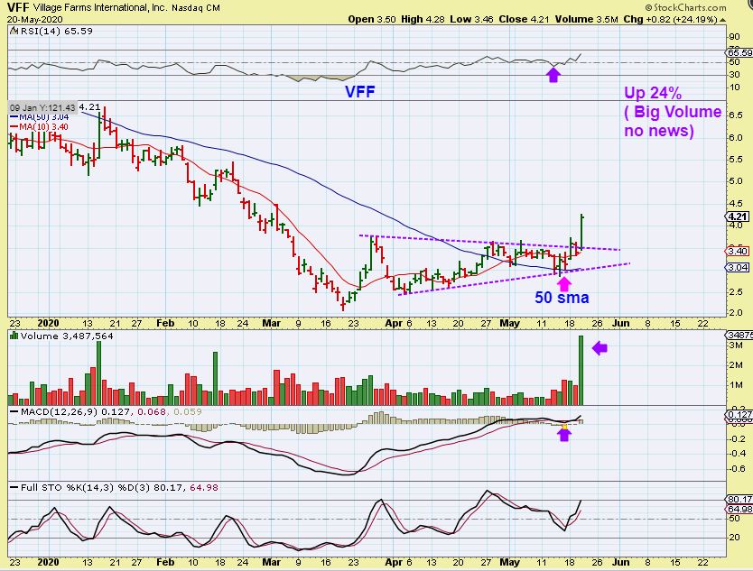 VFF – Earlier I was discussing that for some reason, without news , VFF started to break out so I bought it. This was as of Wednesday and I guess that it was just being a leader, because…