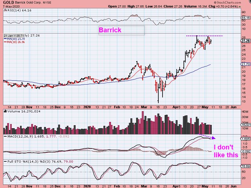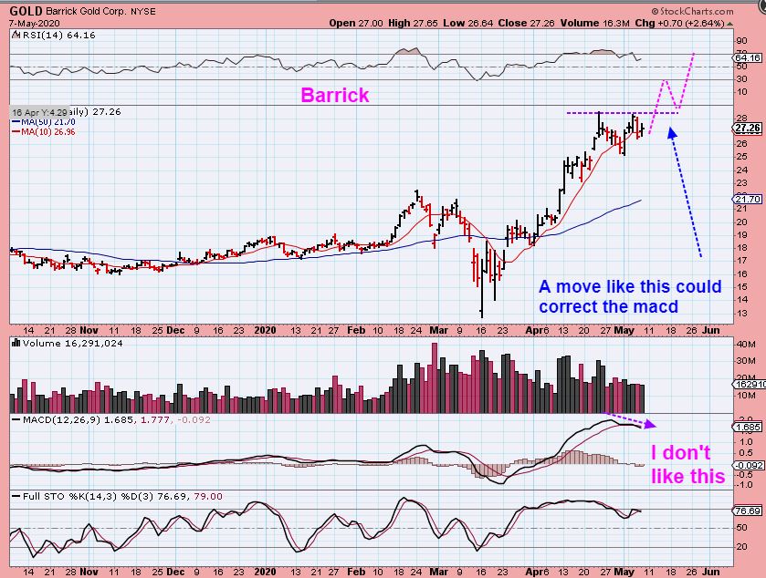 BARRICK GOLD – I will say that I don’t like to see a double top with negative divergence like Barrick, but …