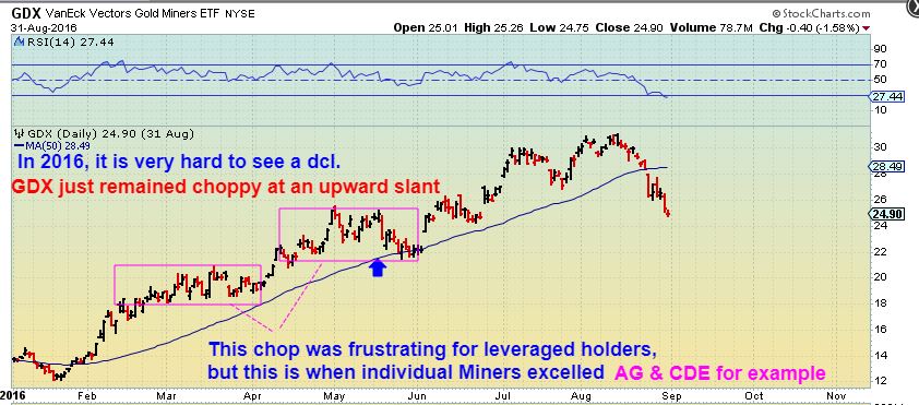 Even if we got a 2nd daily cycle of chop, look at the 2016 chop when you step back. It doesn’t show up in the big picture, the run looks straight up. I want to stay focused on the big picture, where over time we will still see GDX complete that big move higher.