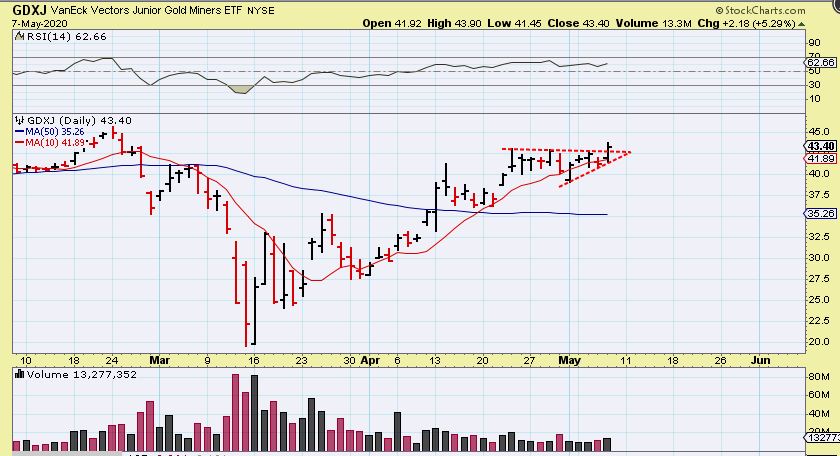 GDXJ – We do have a break out from what looks like a flat topped wedge. Bullish.