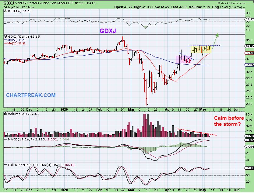 LAST WEEKEND: GDX& GDXJ can still just tear higher as shown here in the chart that I put in the weekend report.