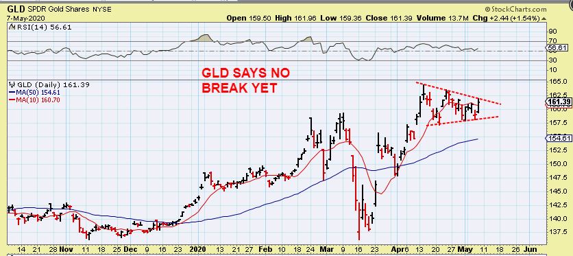 GLD – The tie breaker says no break yet, but this is a beautifully Bullish Chart.