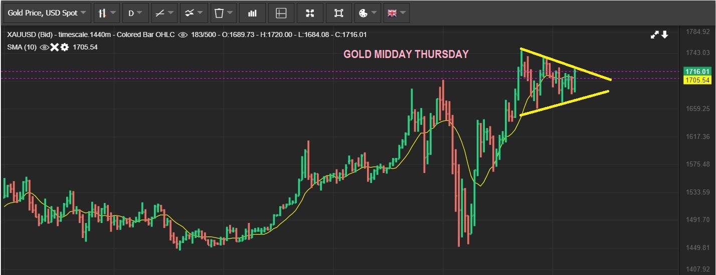 I captured this chart of GOLD midday. As mentioned in Yesterdays report, ‘Cycle counts are late and we are at the Apex, so it is just a matter of time‘…