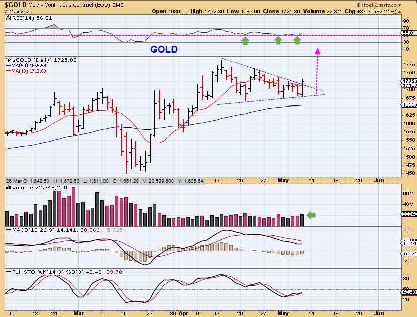 GOLD – So Stockcharts shows a break out and close above the 10 sma , other charting services don’t show the trend line break, but we’ll just say that this remains a very bullish set up. LETS GO TO THE TIE-BREAKER…