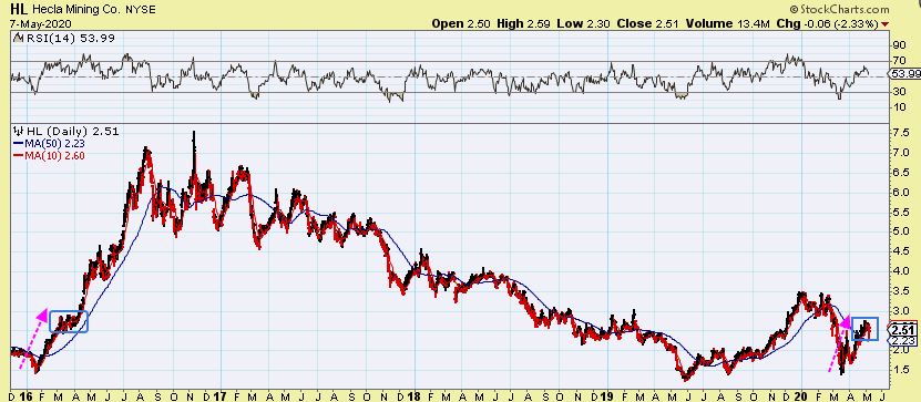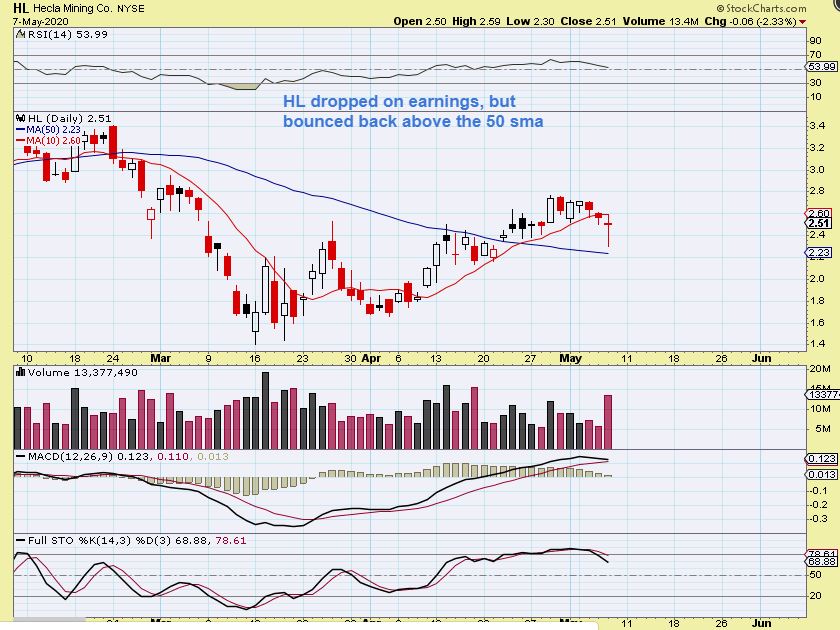 HL dropped and tried to recover. HL has been lagging, but maybe now it’ll play catch up? If it breaks to new recent highs with earnings already behind it, it could get running, and …
