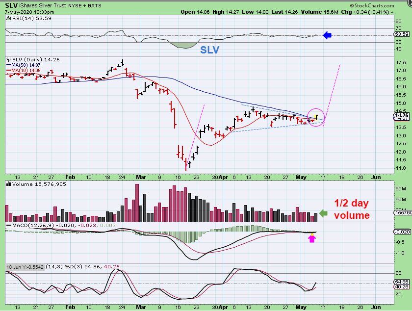 SLV I captured this break out midday, so Silver may be ready to take the lead. Look at the 1/2 day volume.