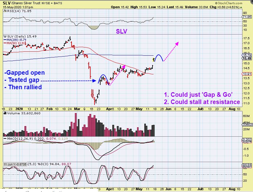 SLV is at an important double resistance area, so it may stall. I do expect Silver to run higher, so when Silver runs and pushes this above this 50 & 200 week ma, it should be viewed as a nice bullish development.