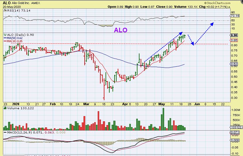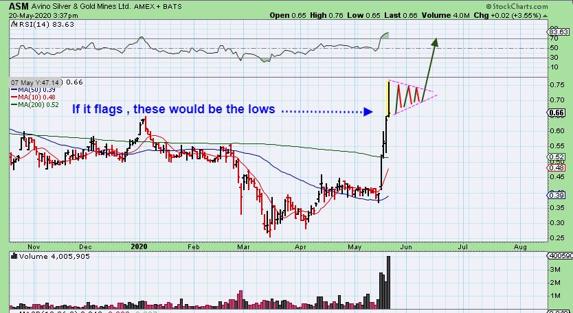 AAU – Volume is increasing and we have a Bull Flag of sorts. AAU may be ready to play catch up if you have cash and need a lagger.
