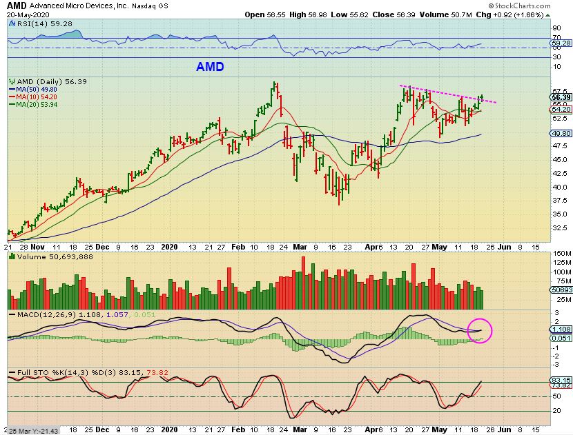 AMD – I pointed out AMD yesterday and it looks to be trying to break higher as a buy (Cup & Handle type formation).