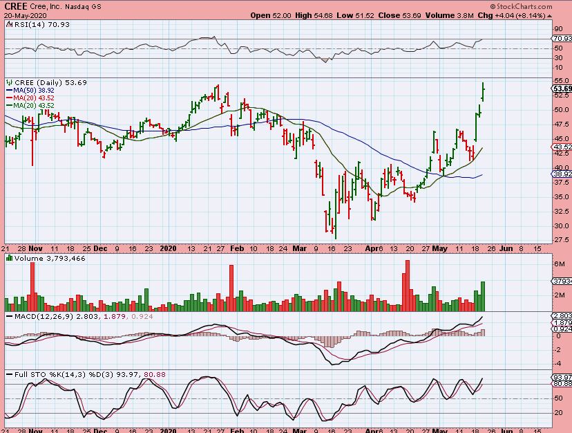 CREE – This is a Semi that already burst higher, but I wanted to just point it out to show that this one QUICKLY made it back to the January highs already. Others could follow, so now let’s look at a few others…