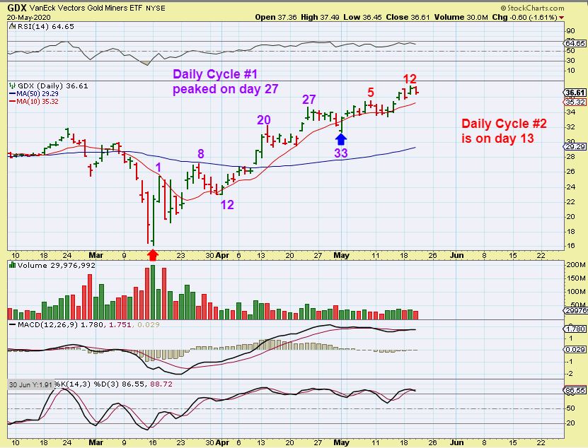 As a reminder, some U.S. traders may be thinking ahead about the Markets being closed on Monday for a 3 day weekend. Tomorrow is the last trading day for you to adjust your portfolio if you wanted to. The General Markets are only on day 5 and GDX is on day 14 today ,which is not likely to be the top of the run in Precious metals yet. That said, you must do whatever helps you to sleep over the long weekend. If you decide to ‘lighten up’, you can consider buying a dip next week if we get one, or adding a lagger like IVPAF in the report.