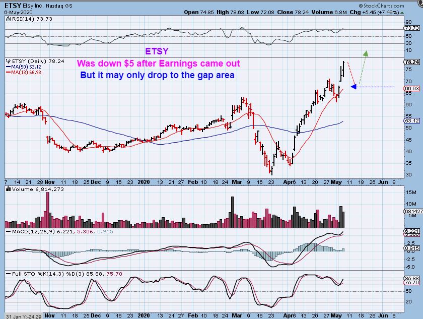 ETSY released earnings and dropped ‘a little’ after hours. This may become a buy on this dip, this chart is at new highs like SHOPIFY.