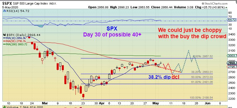 SPX JUST YESTERDAY I WAS MENTIONING: If this ‘buy the dip’ crowd keeps stepping in, we could have a choppy top and a quick drop to 38% Fib by day 40 or so. EDIT: Now I want to show you something in addition to that thought…